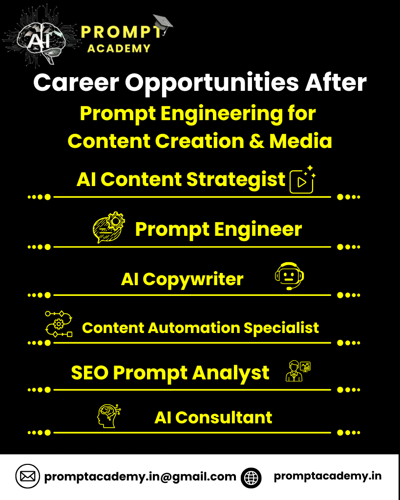 Fresher | 0 – 1 Year | ₹3 L – ₹5 L | Create basic prompts for blogs, captions, scripts, reels, and AI content generation. |