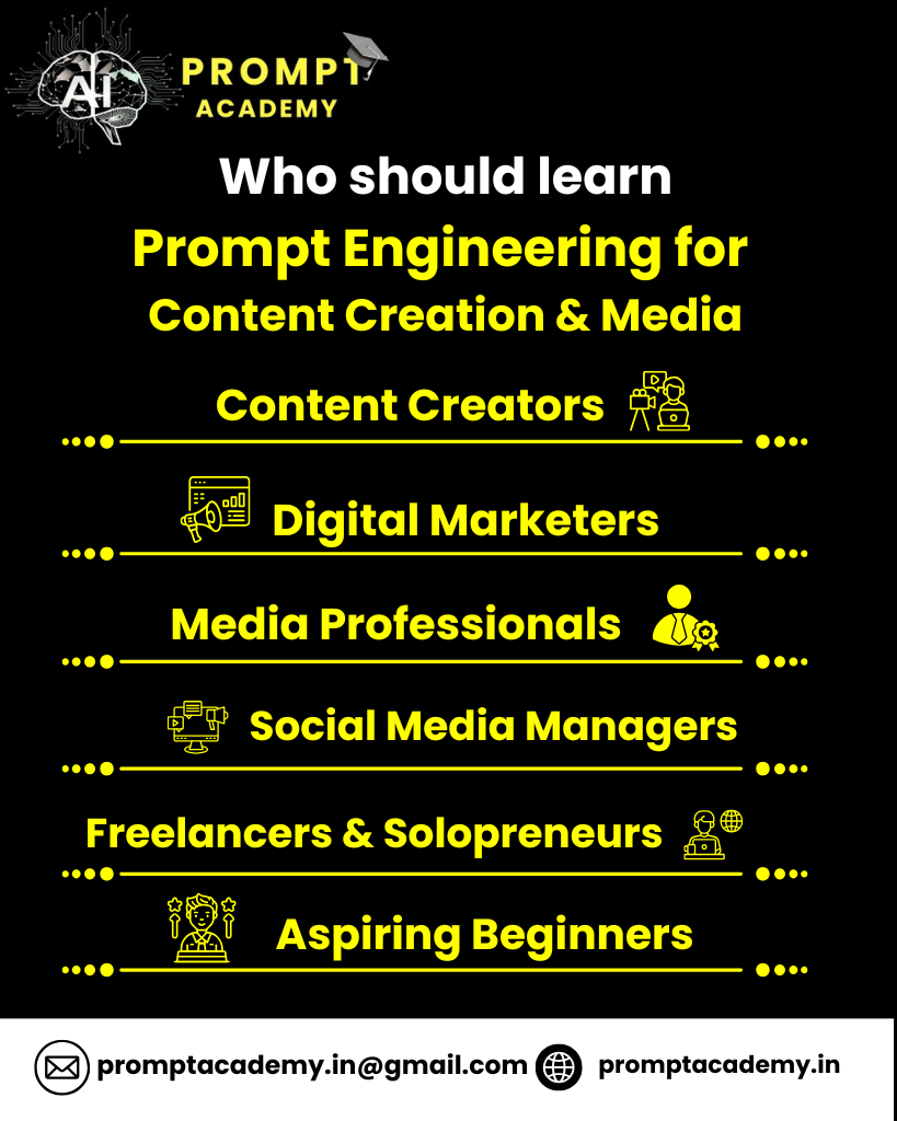 Prompt engineering teaches how to write clear AI instructions to create videos, blogs, scripts, captions, and media content efficiently.